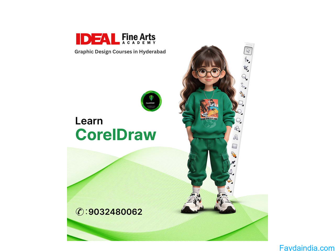 At Ideal Fine-Arts Academy, we believe great designers are made through hands-on training, live-projects and real-time assignments. Our Graphic design course helps students develop in-demand creative skills required by top companies by ensuring students are well prepared for the professional design industries.