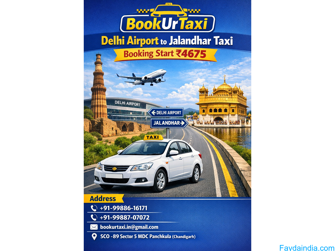 Delhi airport to Jalandhar Taxi | Booking Start ₹4675 - BookUrTaxi